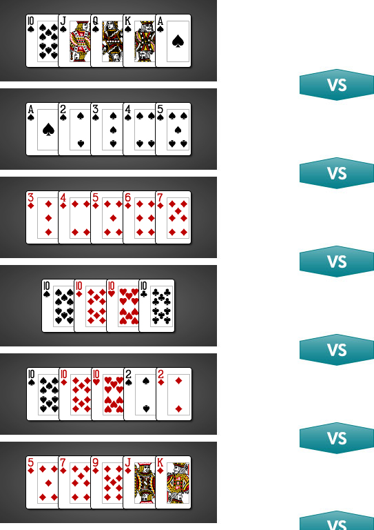 5ÀåÀÇ Ä«µå·Î À§ÀÇ ¾îµð¿¡µµ ÇØ´çµÇÁö ¾Ê´Â ÆÐ1. ±âº»ÀûÀ¸·Î 5ÀåÀÇ Ä«µå·Î ½ÂºÎ¸¦ °áÁ¤Çϸç,°¡Àå ³ôÀº ¼ýÀÚ¸¦ ºñ±³ÇÏ¿© ´õ ³ôÀº ÆÐ°¡ ½Â¸®ÇÕ´Ï´Ù.